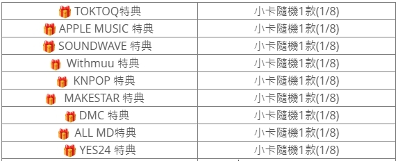(特典皆與專輯張數1:1贈送)