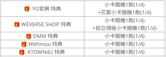 (特典皆與專輯張數1:1贈送)