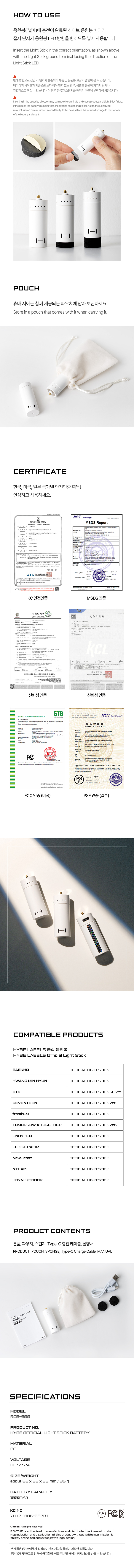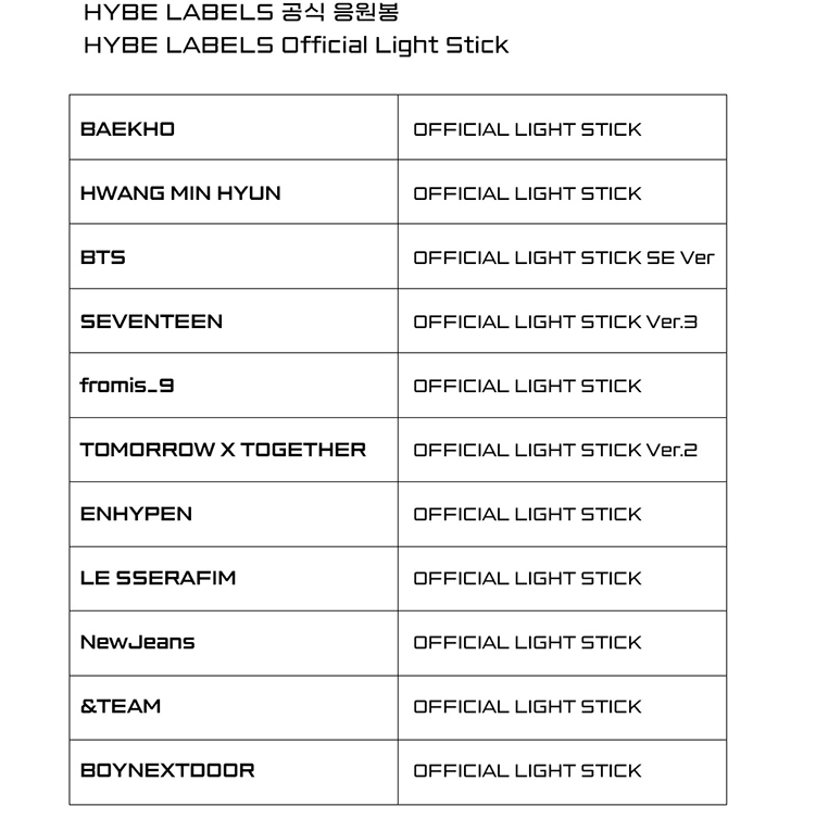 *HYBE充電式電池適用以下團體的手燈型號