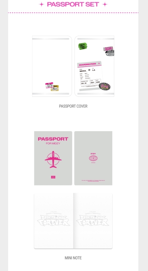 PASSPORT COVER 1종, MINI NOTE 1종, SPECIAL TICKET 5종 1세트