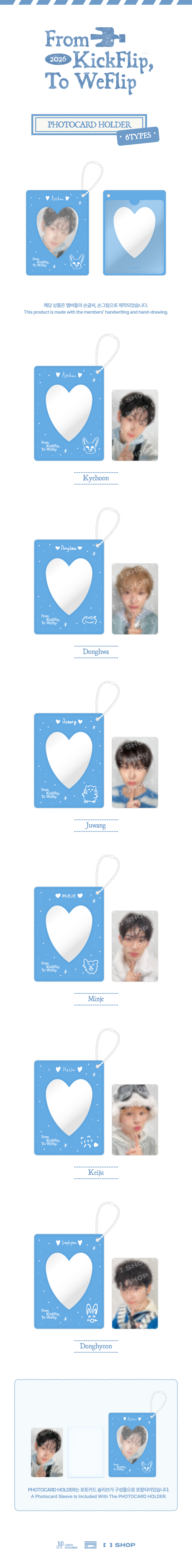 사이즈 : PHOTOCARD HOLDER : 8.5X11.4CM / PHOTOCARD SLEEVE 6.5X9.2CM / PHOTOCARD 5.5X8.5CM
