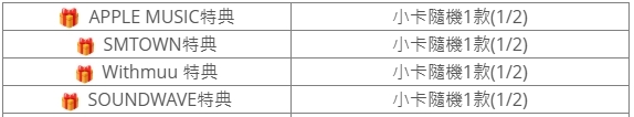 (特典皆與專輯張數1:1贈送)