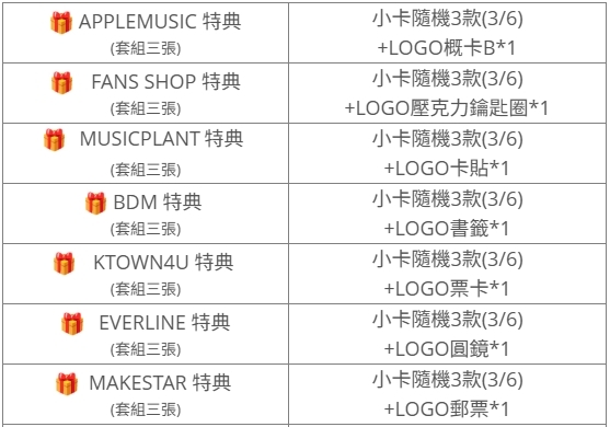 (特典皆與專輯張數1:1贈送)