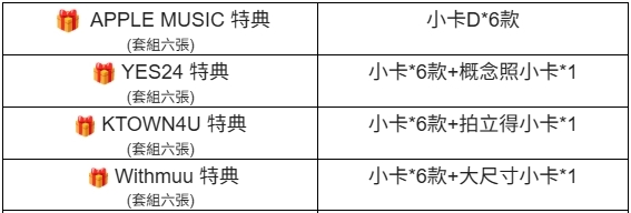 (特典皆與專輯張數1:1贈送)