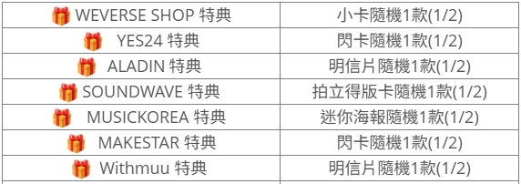 (特典皆與專輯張數1:1贈送)