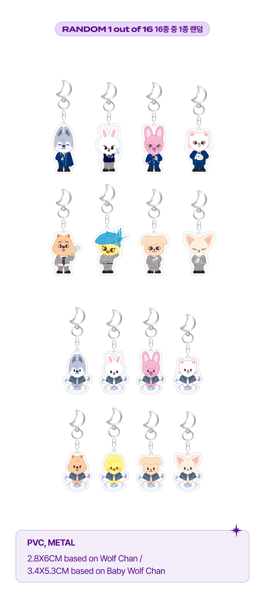 사이즈 : 2.8X6CM (Wolf Chan 기준) / 3.4X5.3CM (Baby Wolf Chan 기준)