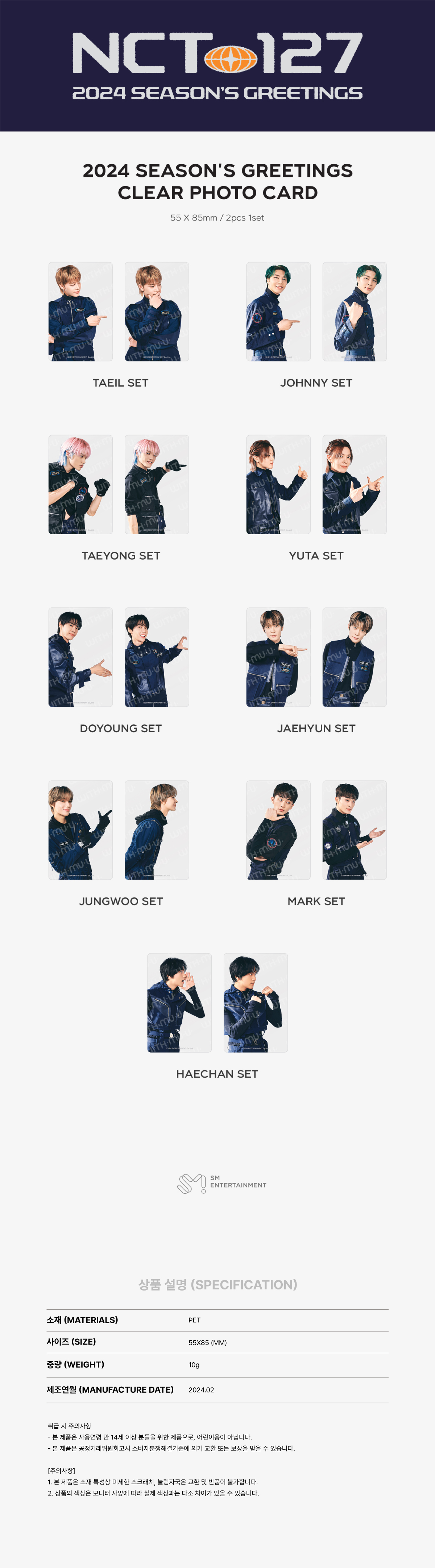 ✅CLEAR PHOTOCARD (NCT 127 Ver.) 透卡