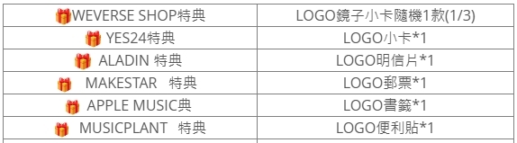 (特典皆與專輯張數1:1贈送)