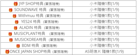 *訂購時請記得在備註填上想要的成員特典小卡