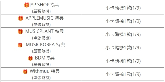 (特典皆與專輯張數1:1贈送)