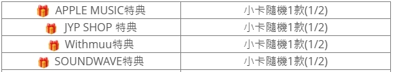 (特典皆與專輯張數1:1贈送)
